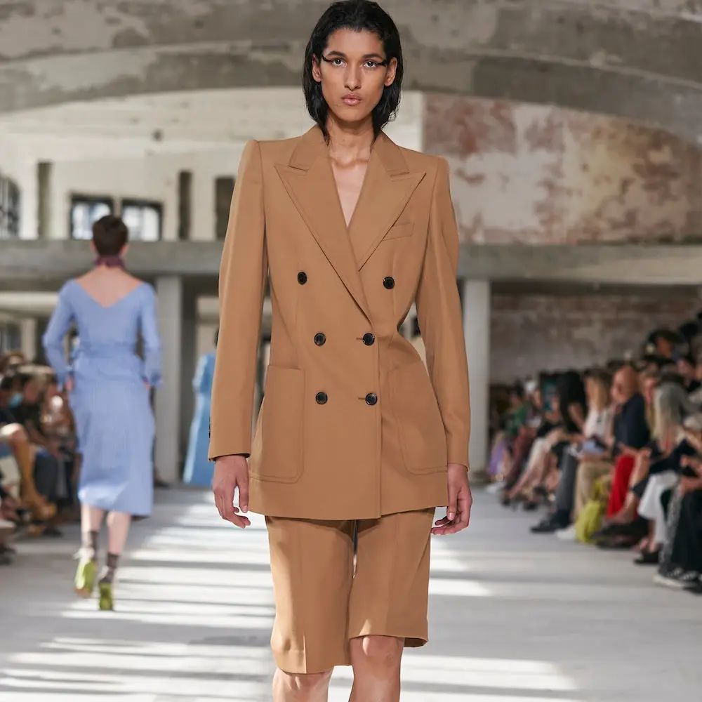 今シーズンよく見かけるスーツのトレンドはショートスタイルです。 ロエベ、シャネル、ドリス ヴァン ノッテンなどのほとんどのショーツは膝丈です。 しかし、ミニのヘムラインはグッチやプラダにも登場しました。