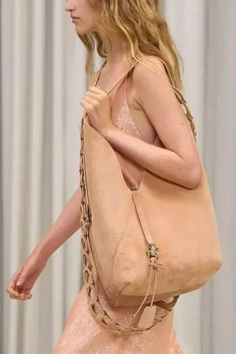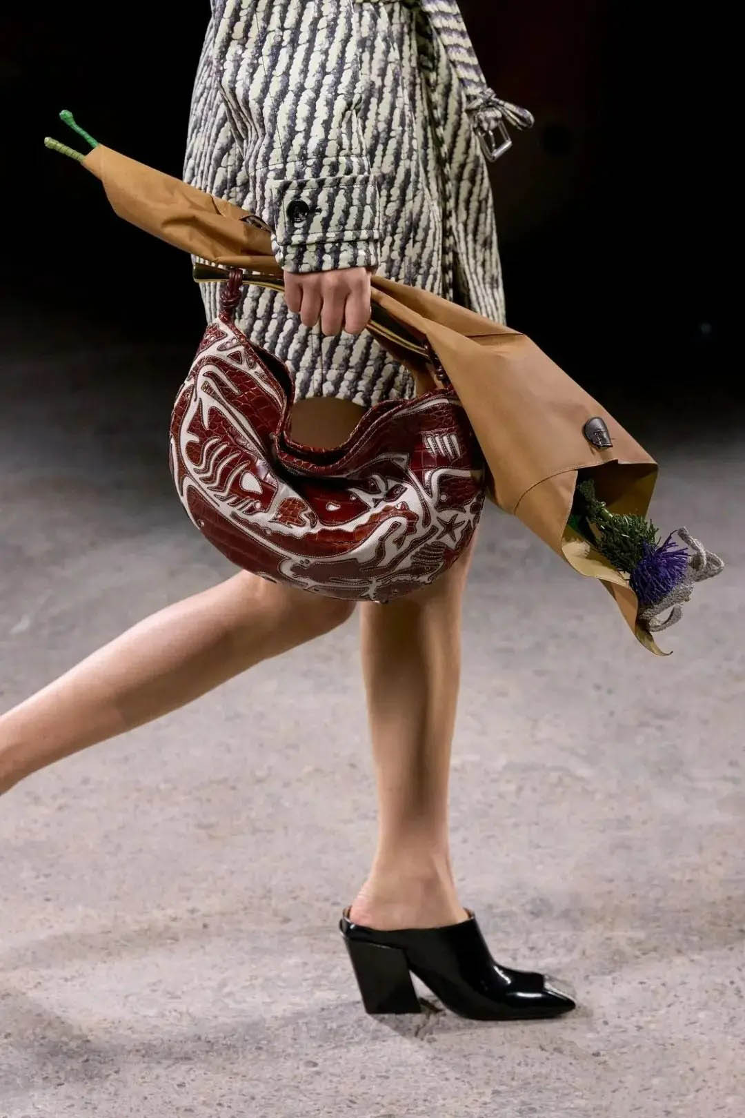 スエードは今年最大のトレンドの1つとなり、デザイナーたちはこのトレンドが2025年まで続くことを証明しています。さまざまな形状や色調のアクセサリーがファッションショーに登場し、長期間注目されています。