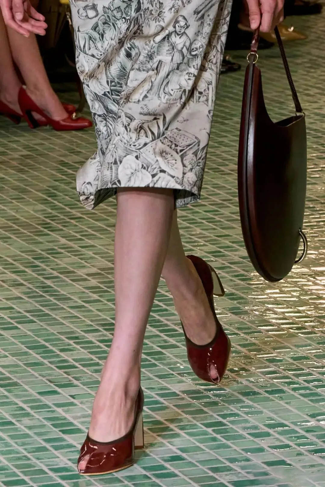 2025年春夏シーズン、フラットシューズに代わりヒールシューズが注目を集めています。デザイナーたちが特に注目したのはオープントゥデザインのシューズです。この1940年代のアクセサリーは、Miu Miu、Tory Burch、Chloéをはじめとする多くのコレクションに登場し、再び注目を集めています。