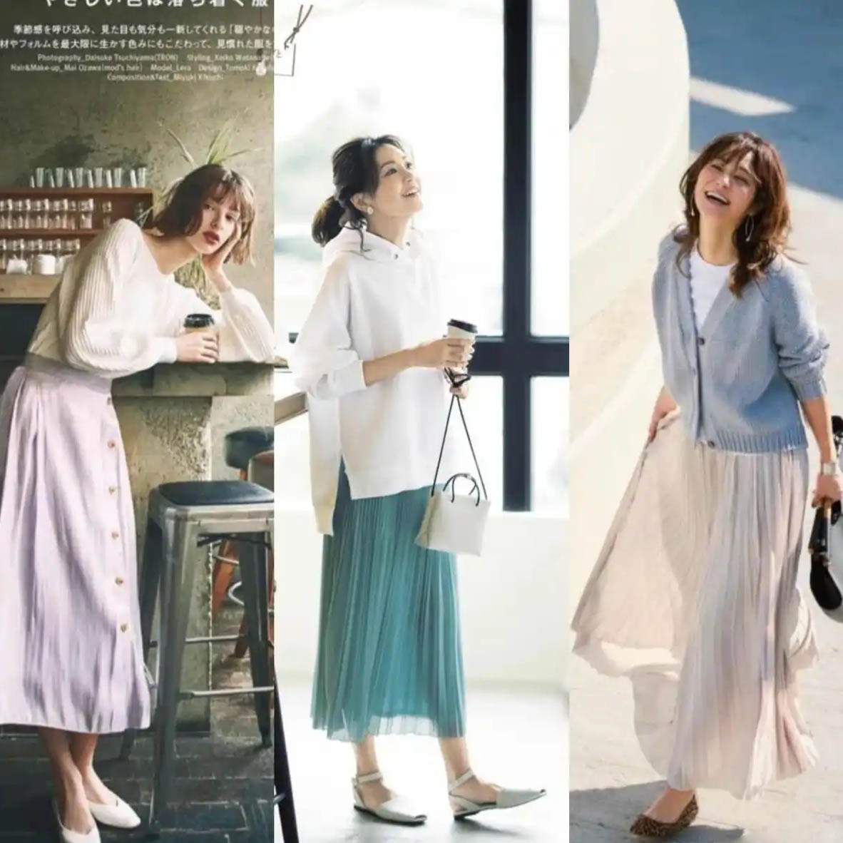 春はスカートを楽しむ季節。デザインによって印象もガラッと変わります。2025年も引き続き膝下丈がトレンド!スカートの長さはふくらはぎの中間あたりを選ぶと、脚をきれいに見せつつスタイルアップ効果も抜群です!