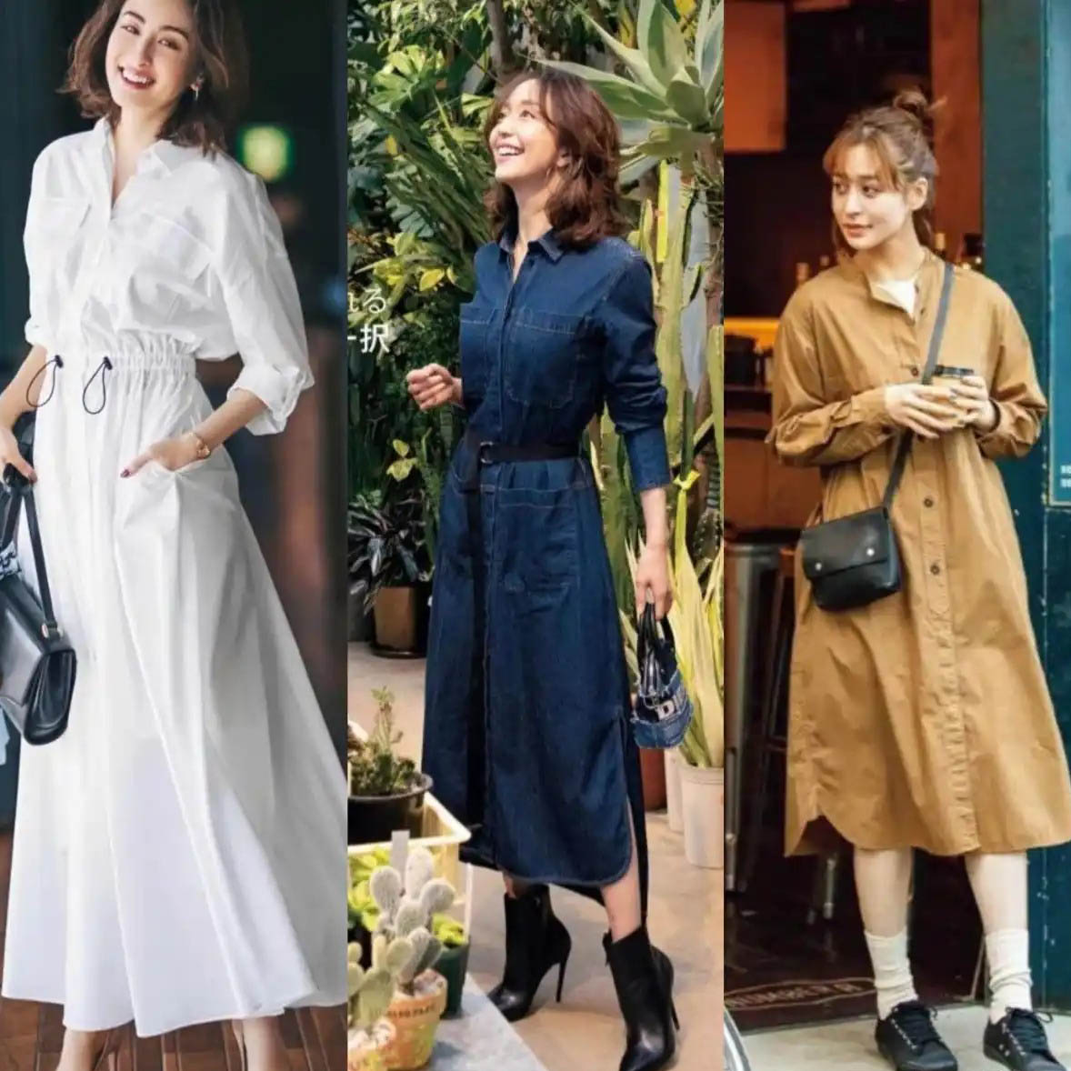 ホワイトのミリタリーテイストシャツワンピースは、女性らしさとクールな印象を両立。デニムシャツワンピースにブラックのベルトをプラスすれば、春らしいすっきりとした着こなしに。