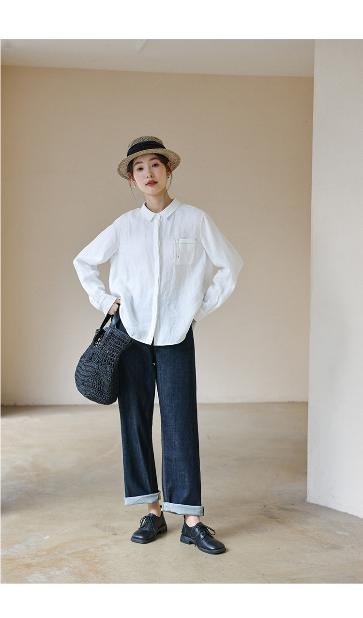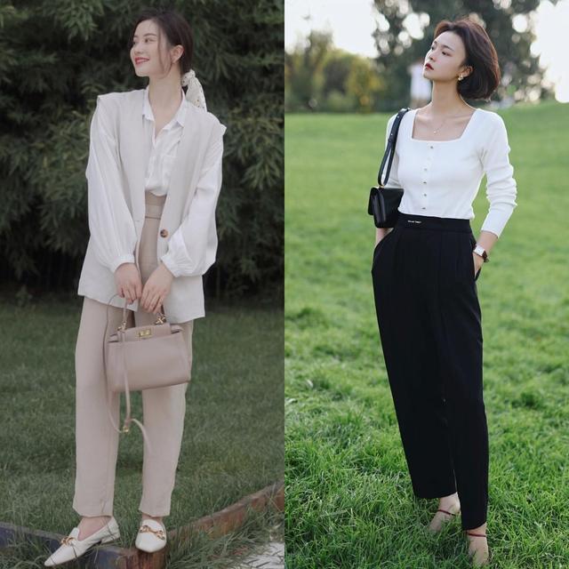 おすすめは、白のブラウス+テーパードパンツ+ローファーの組み合わせ。