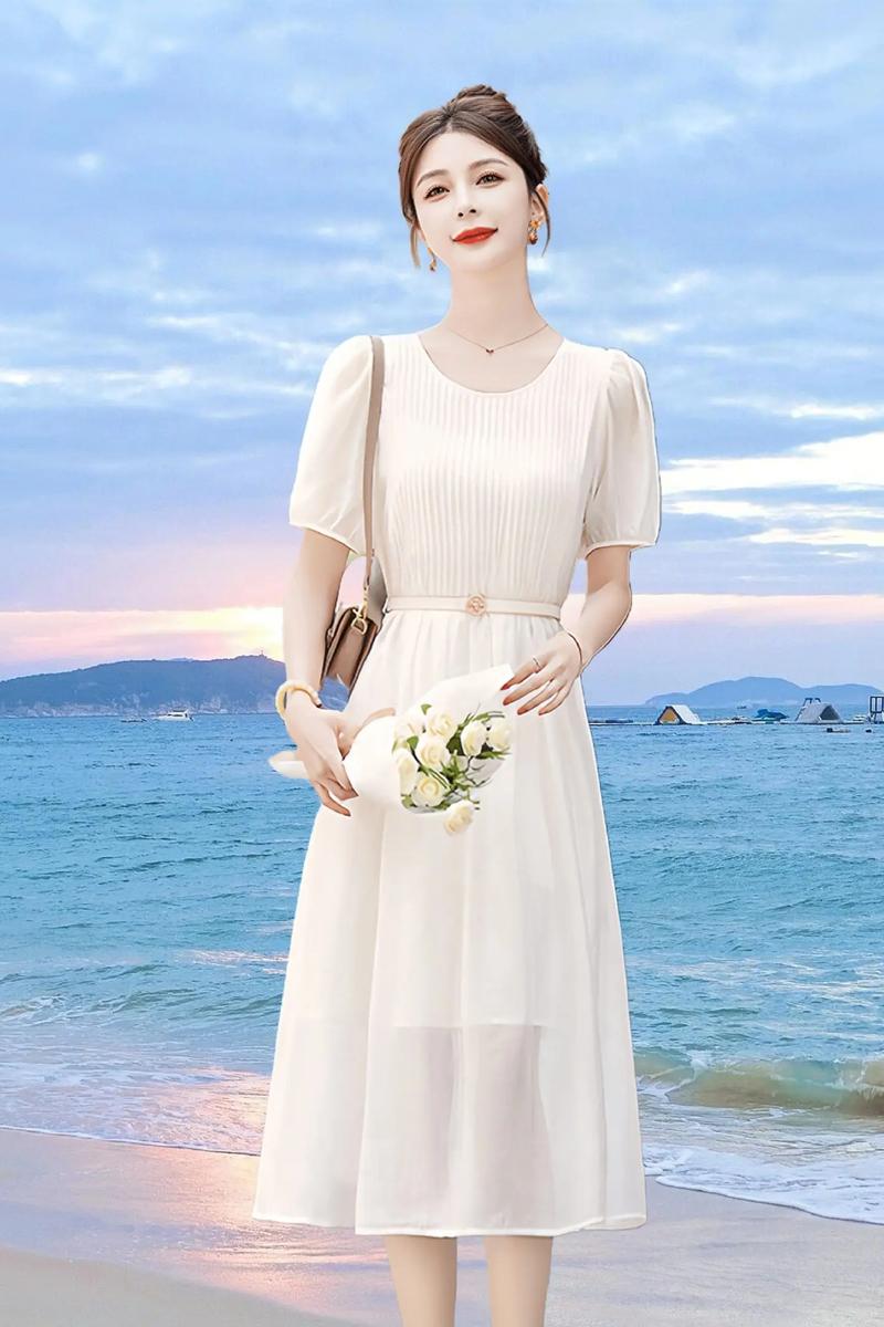 ワンピースはウエストマークされたデザインだと、雨の日でもすっきり見せることができます。
