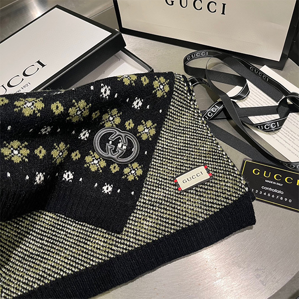 グッチ GUCCI マフラー レディース メンズ ブラック/ベージュ