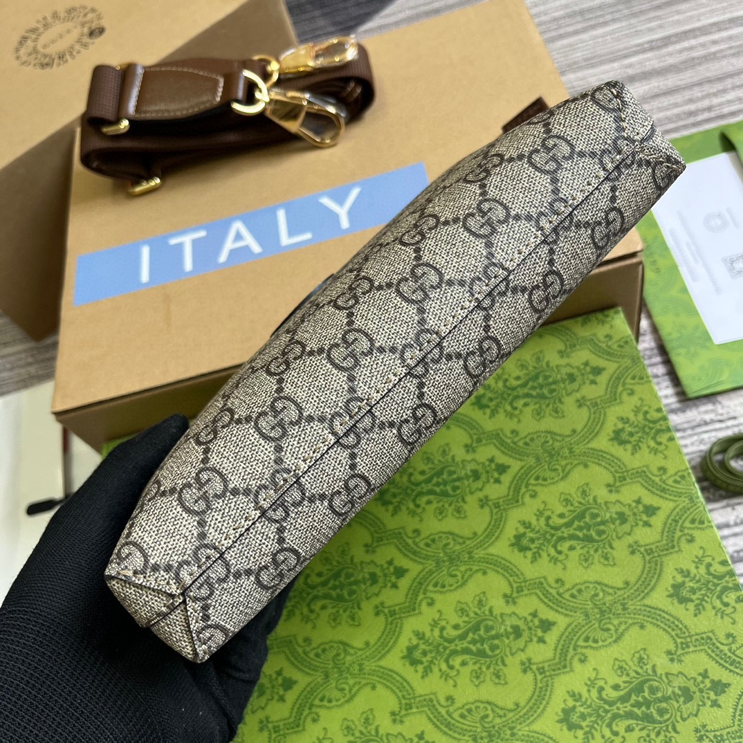 GGスプリーム キャンバスは、1960年代にグッチのコレクションに登場してから、さまざまな形で再解釈されてきました。ブランドを象徴するスプリーム キャンバスは、同系色のレザー トリムとオーバル インターロッキングG レザータグでアクセントを添えたこのメッセンジャーバッグなど、グッチを代表するレザーグッズを新たな次元で彩り続けています。