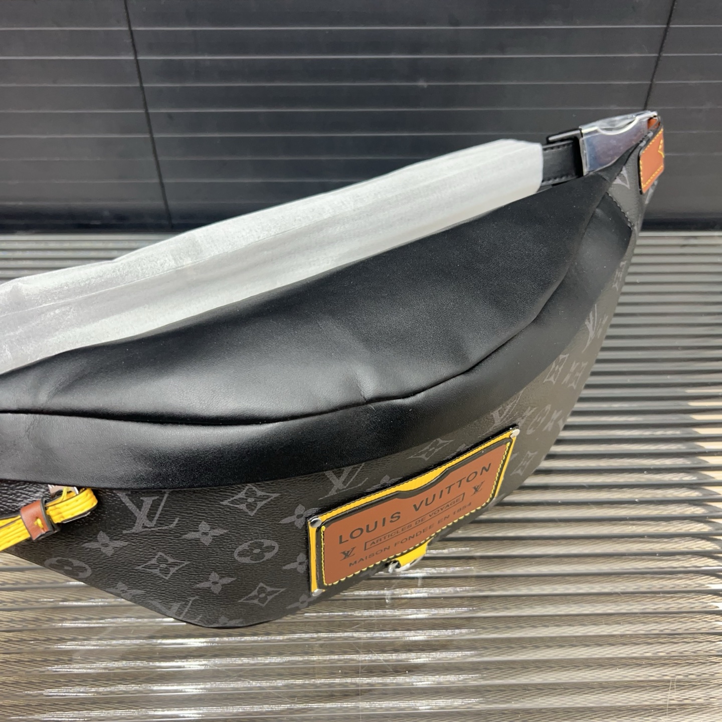 ルイヴィトンモノグラム・エクリプスのディスカバリー バムバッグが入荷しました。ブランドロゴやイエローのファスナープルがアクセントのクラシックなデザインです。