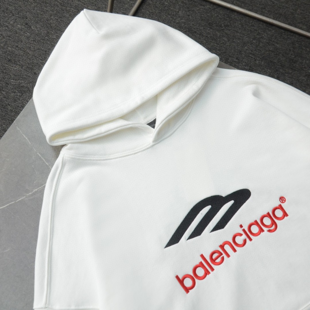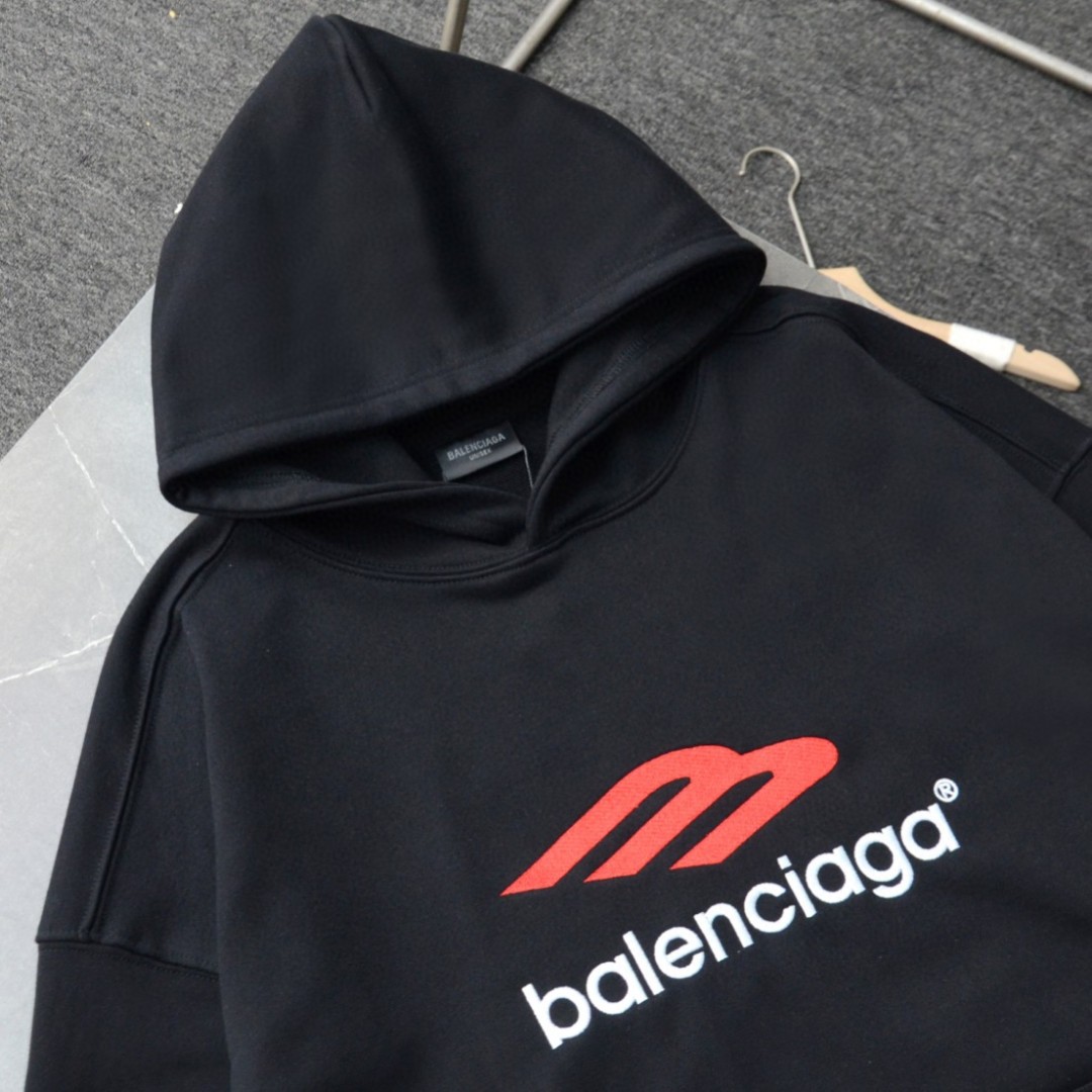 バレンシアガのアイコニックな3Bスポーツアイコンを大胆にデザインしたオーバーサイズのフーディー