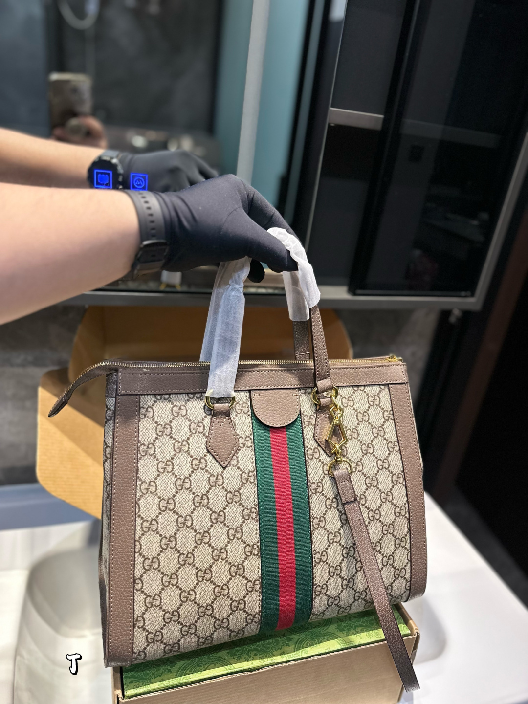 〔オフィディア〕ラインの新作スモール トップハンドル トートバッグ。GGスプリーム キャンバスに、グリーン/レッド/グリーンのウェブ ストライプがはめ込まれ、1970年代のアーカイブから取り入れたダブルGが、レザーのタブ ディテールとジッパープルのトップに飾られています。取り外し可能なショルダーストラップ付きで、様々なスタイルでご使用いただけます。