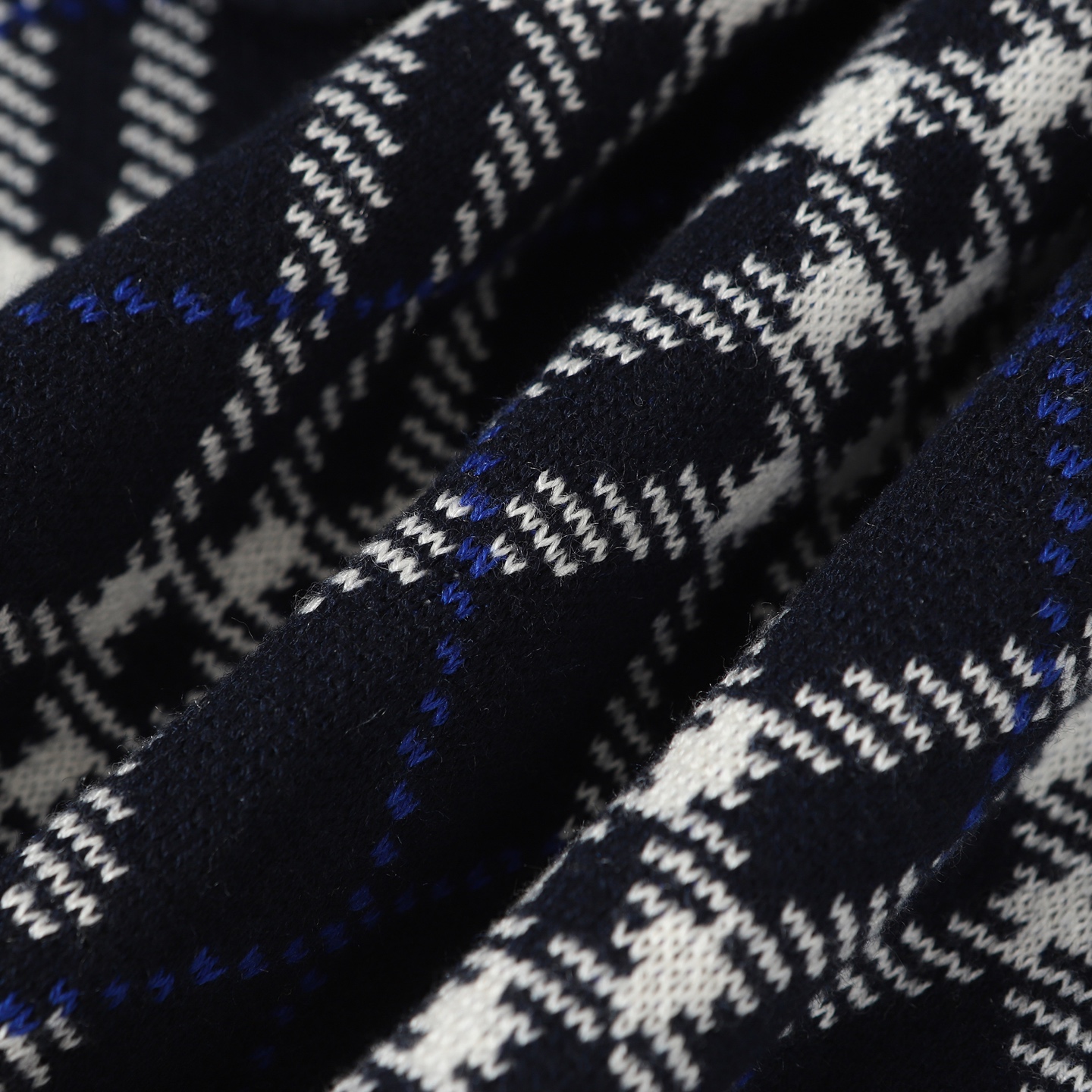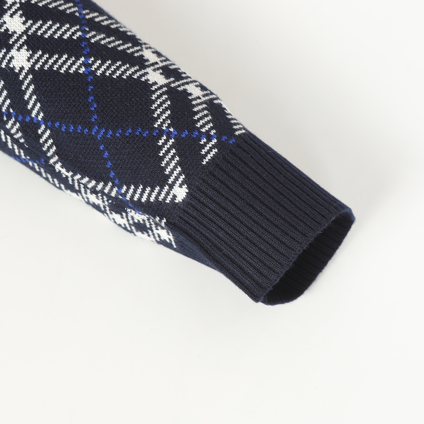 バーバリーを代表するクラシックチェックが、繊細なジャカードニットの技法で生まれ変わり、ブランド象徴のブリティッシュスタイルを鮮やかに表現しています。