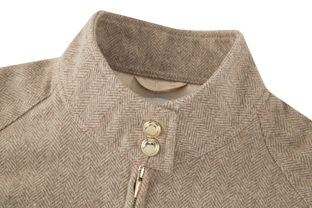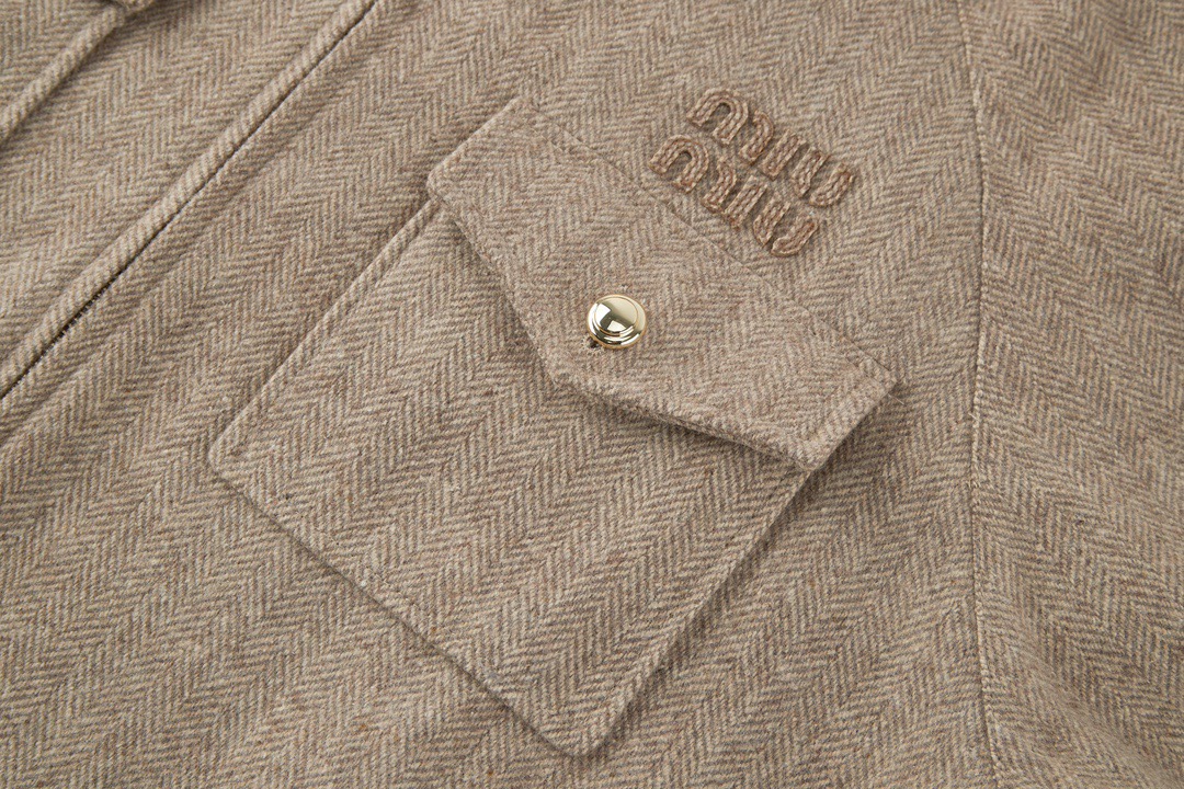 ミュウミュウのバージンウールジャケットは、フロントにボタン付きのフラップポケット2つ、サイドにポケット2つと、クラシックなデザインが特徴です。リブ編みの裾がスタイリッシュなアクセントを添えています。100%バージンウールを使用し、温かさと快適さを兼ね備えた、洗練されたカジュアルなルックスです。
