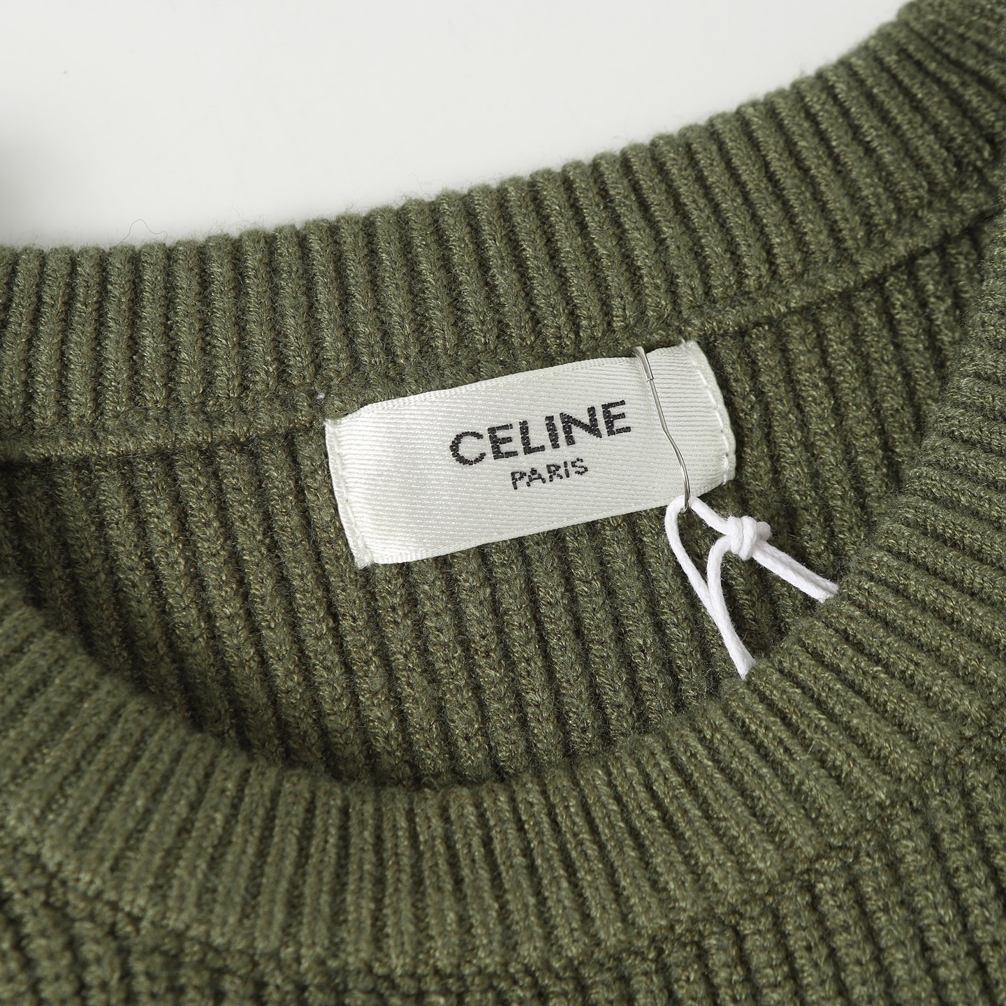 セリーヌを象徴するブランドロゴが胸元に大胆に配置された、定番のクルーネックニットです。