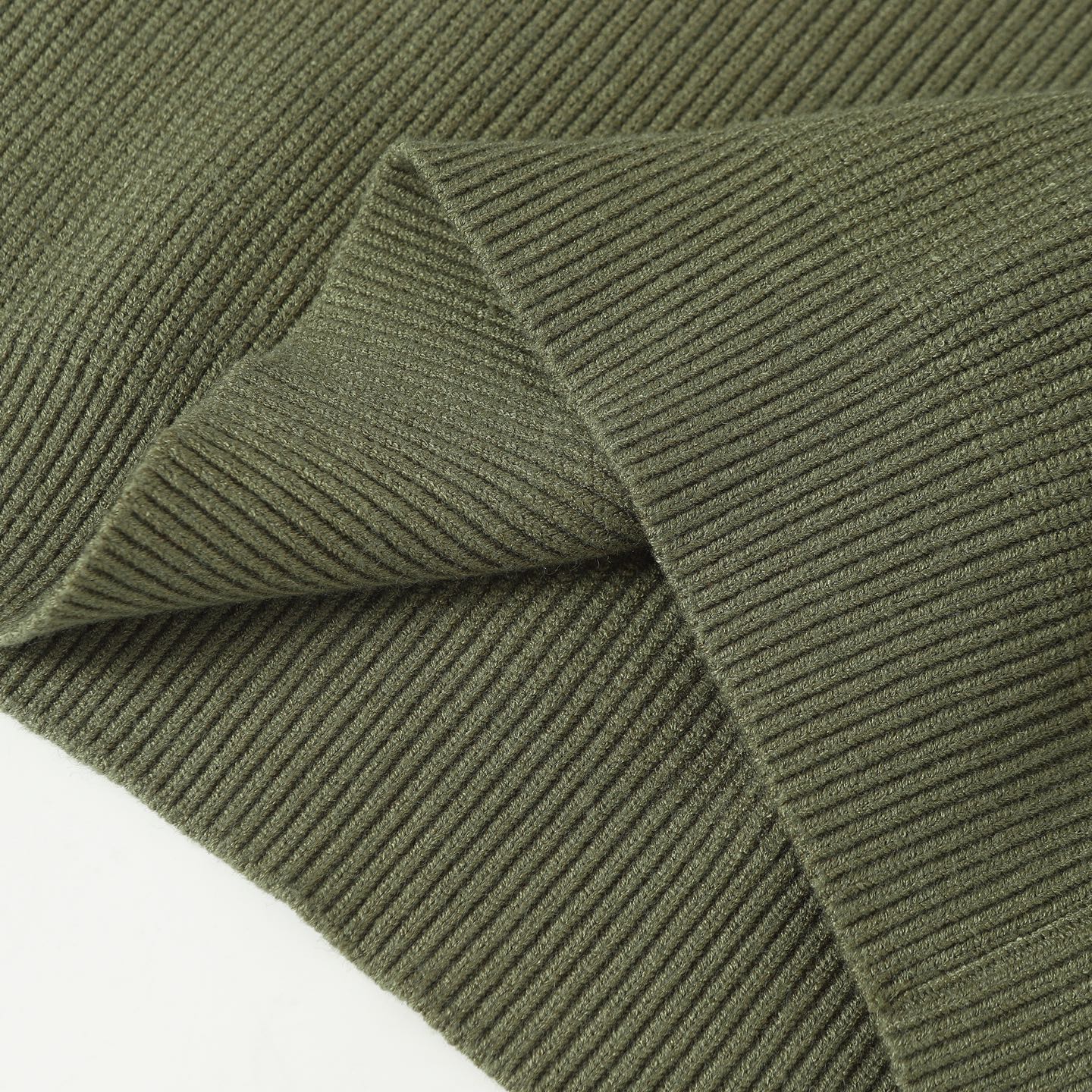 細かなリブ編みの肌理が高級感を引き立て、胸元のホワイトロゴがシンプルなデザインにアクセントを加えています。