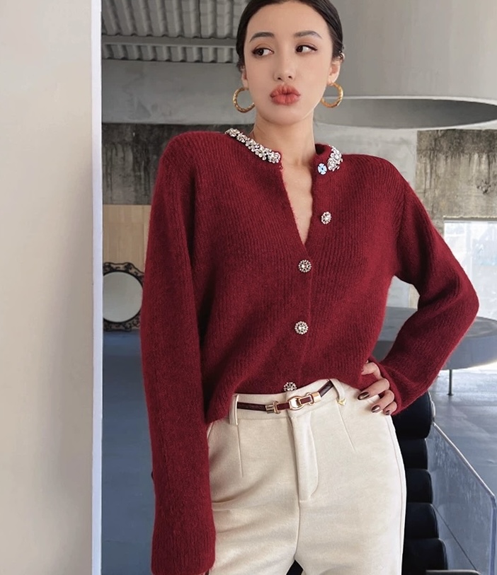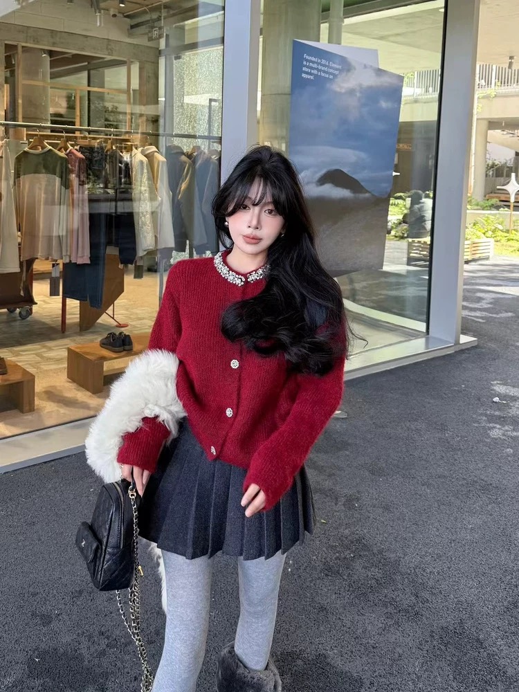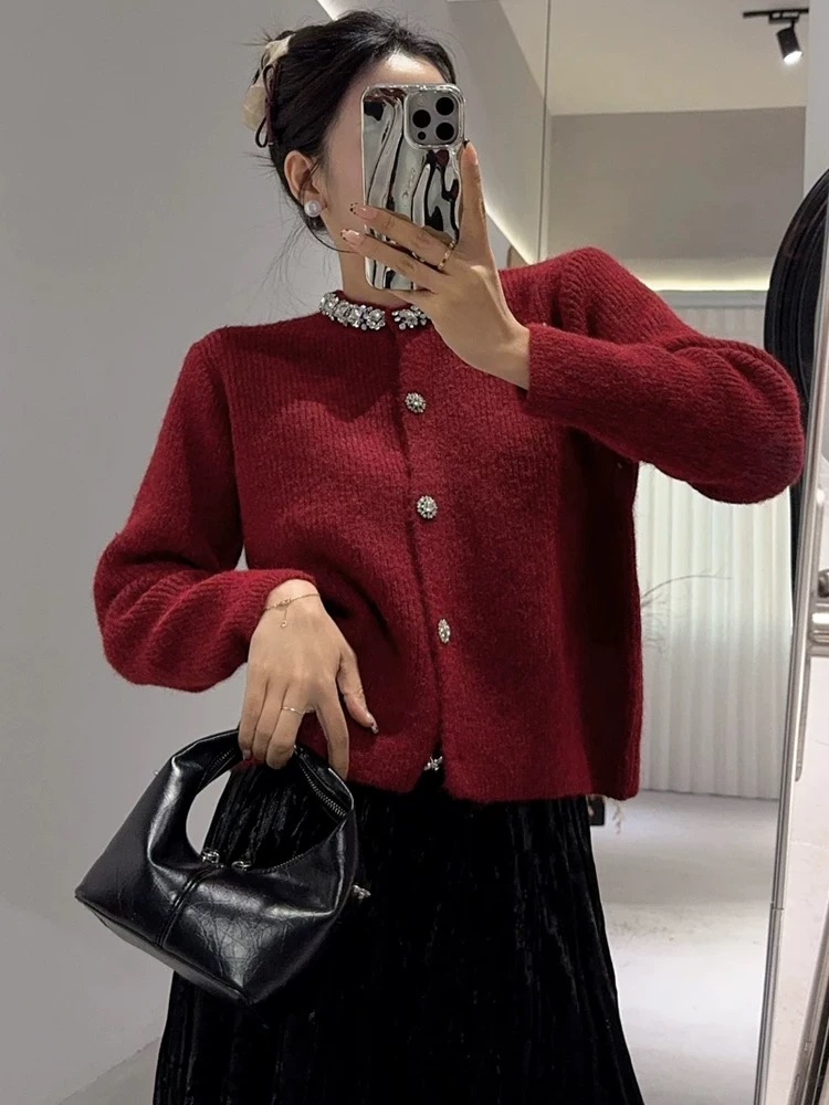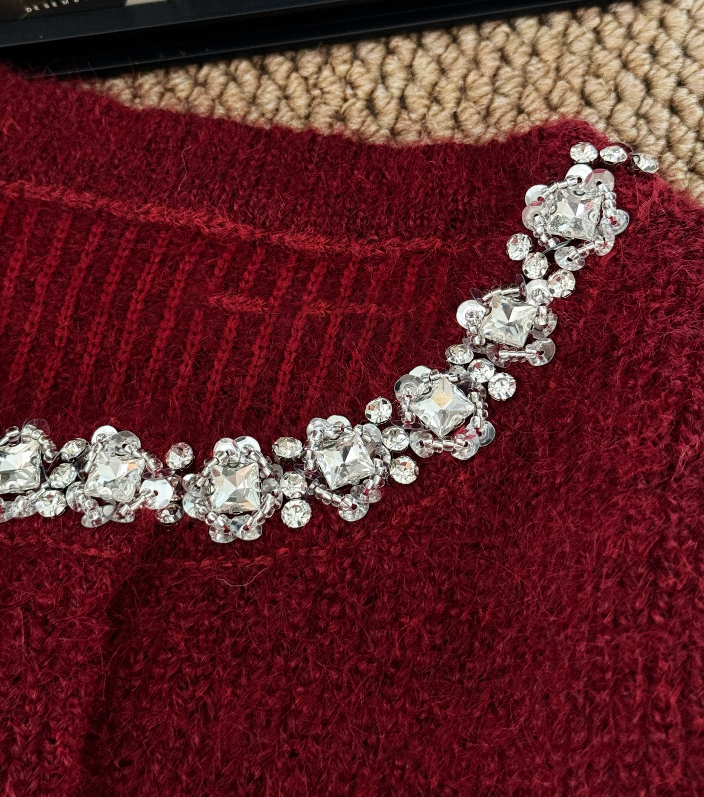 フレンチムード漂う、ビジュー付きニットカーディガン。