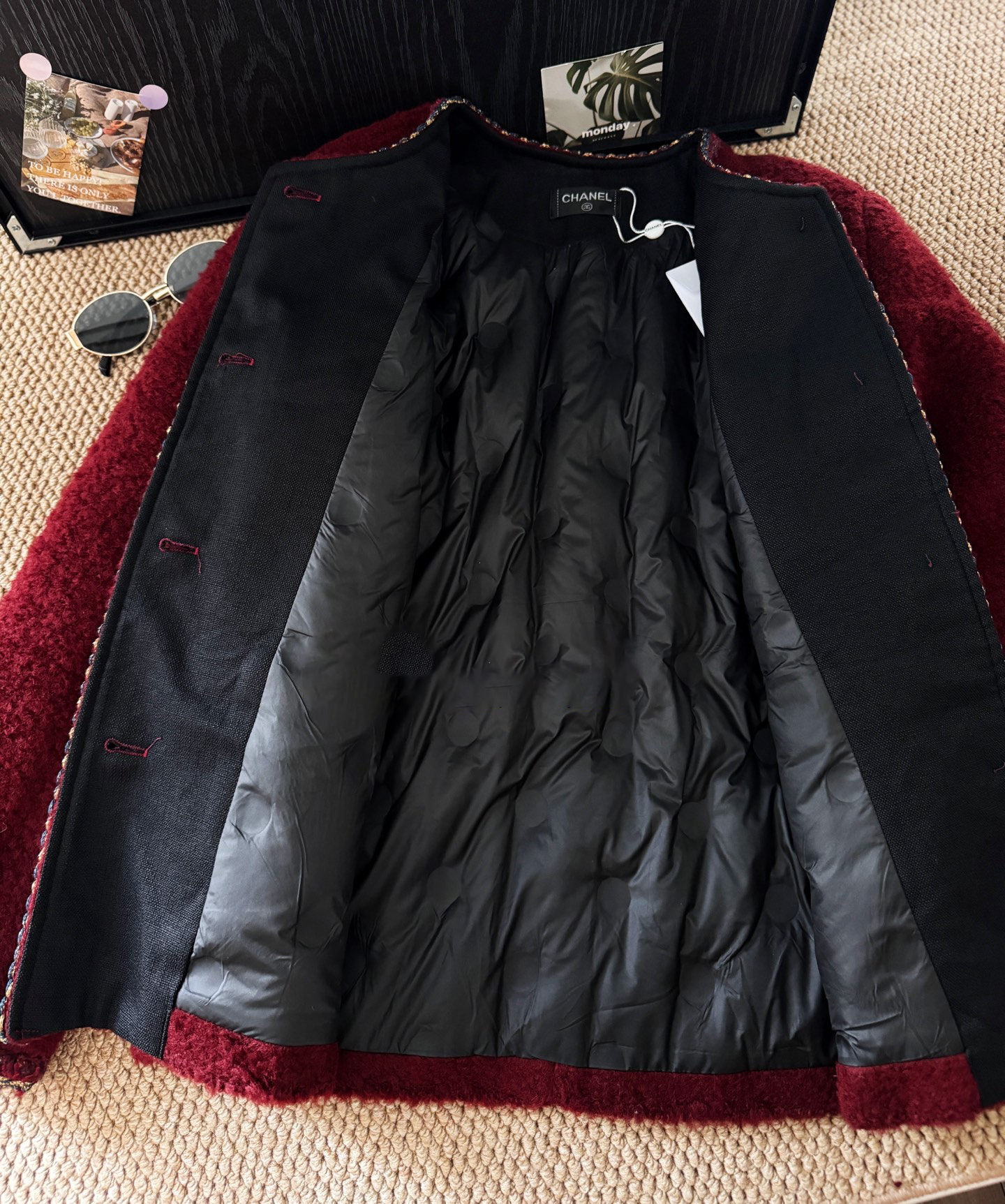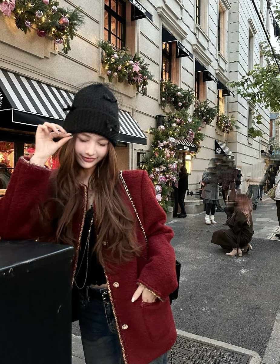冬でもしっかり暖かく、同時に見た目の美しさも妥協しない一着です。赤い糸を効かせた編地と、複合ライニングの組み合わせにより、着用時はより立体的でハリのあるシルエットに。質感の良さが一目で伝わります。