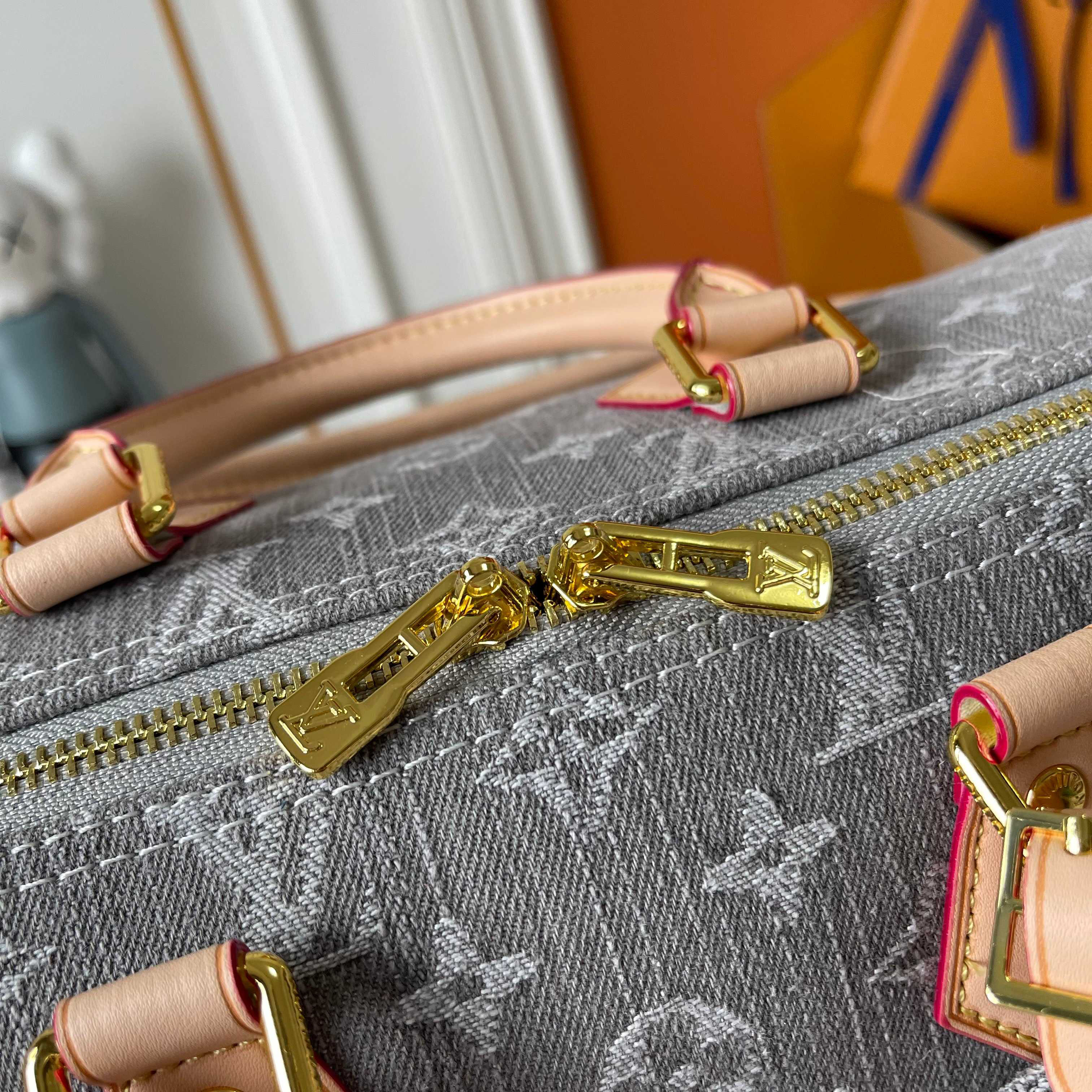 2005年に発表されたアイコニックなモノグラム・デニム パターンを再び取入れ、今シーズンにふさわしく再解釈した「スピーディ・ソフト 30」。ルイ・ヴィトンならではの特別なブリーチ加工技術を駆使したオーガニックコットンにレザーのトリミングを施し、明るいゴールドカラーの金具で引き立てました。キーベルや取外し可能なネームタグをはじめとするシグネチャーディテールは、いずれもメゾンのトランク製造の伝統を讃えるもの。トロンハンドルを取付ければショルダーバッグとしても使用できます。