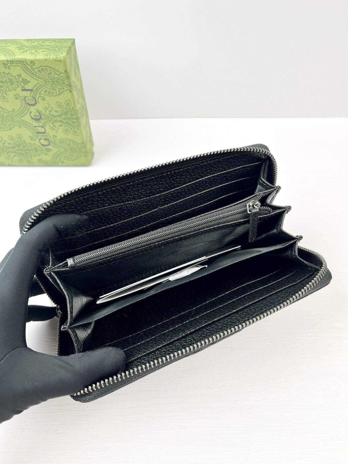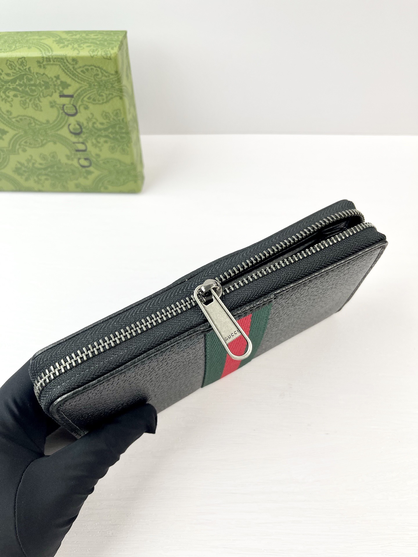 洗練されたレザーが際立つブラックの〔オフィディア〕。新たな機能をプラスすることで、グッチを象徴するスタイルがさらにグレードアップしました。ナチュラルシャイン ソフトレザーで仕立てたこのジップアラウンドウォレットには、ダブルGとウェブ ストライプ ディテールで華やかさを添えました。