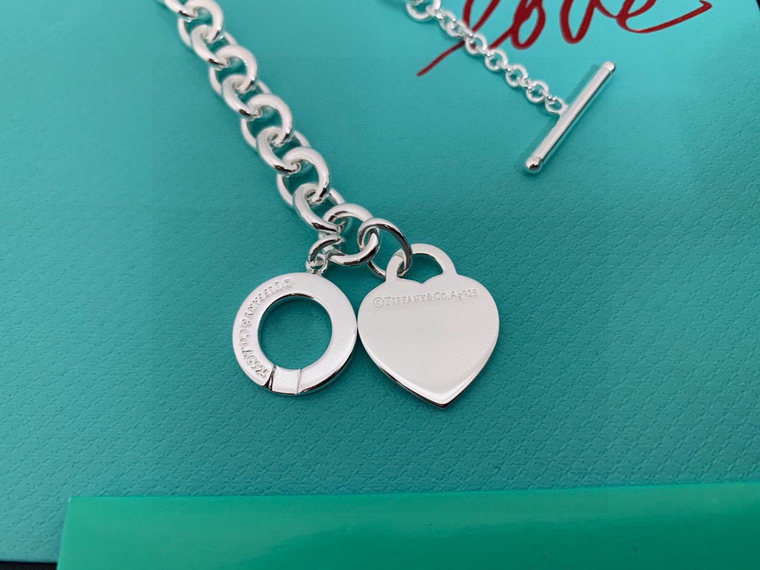 ティファニーが1969年に発表したキーリングに着想を得たリターン トゥ ティファニー™ コレクションは、ティファニーならではの象徴的なモチーフで知られています。このスターリングシルバーのリンク ネックレスは、オーバーサイズのトグル開閉が特徴的で、アイコニックなハート タグにはラウンド ブリリアント カット ダイヤモンド1石がセッティングされています。単独で身に着けて存在感を放つことも、他のロング ネックレスと組み合わせて優美なスタイリングを楽しむこともできるデザインです。