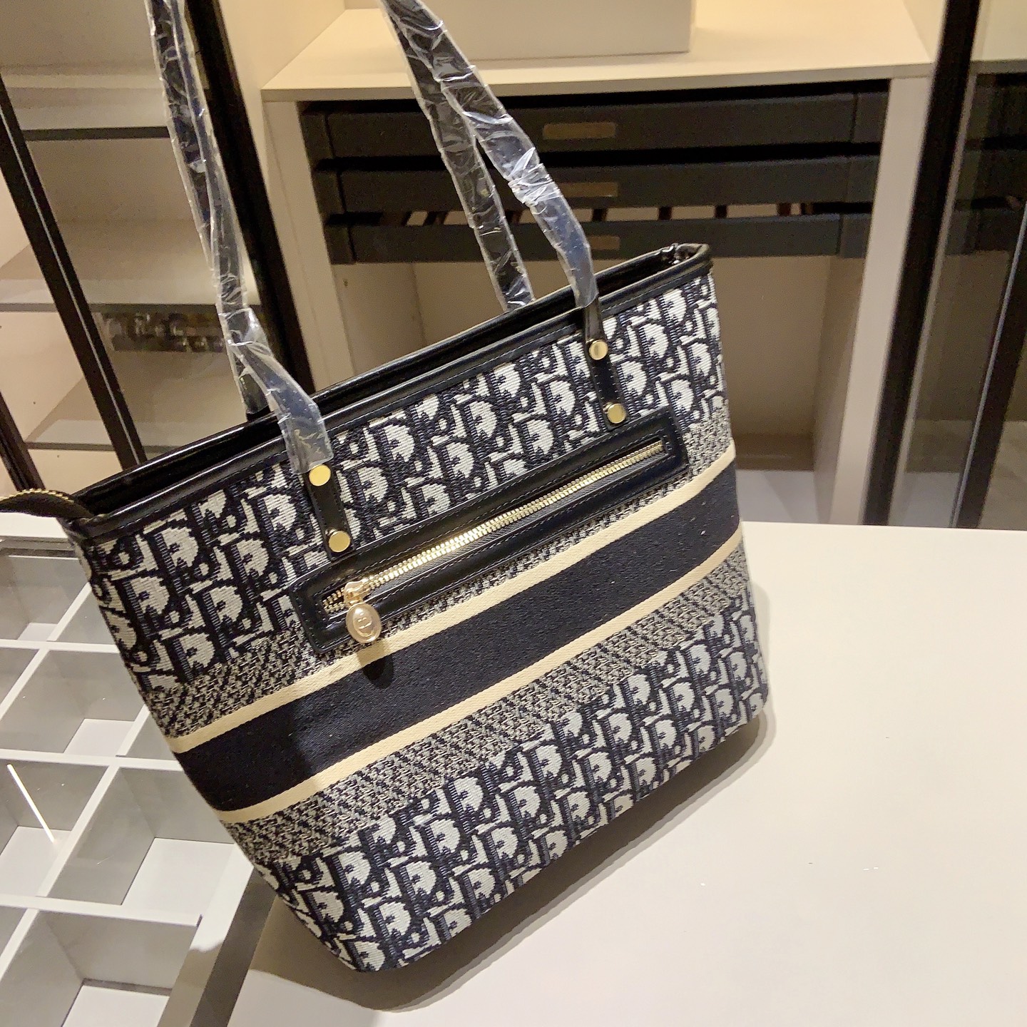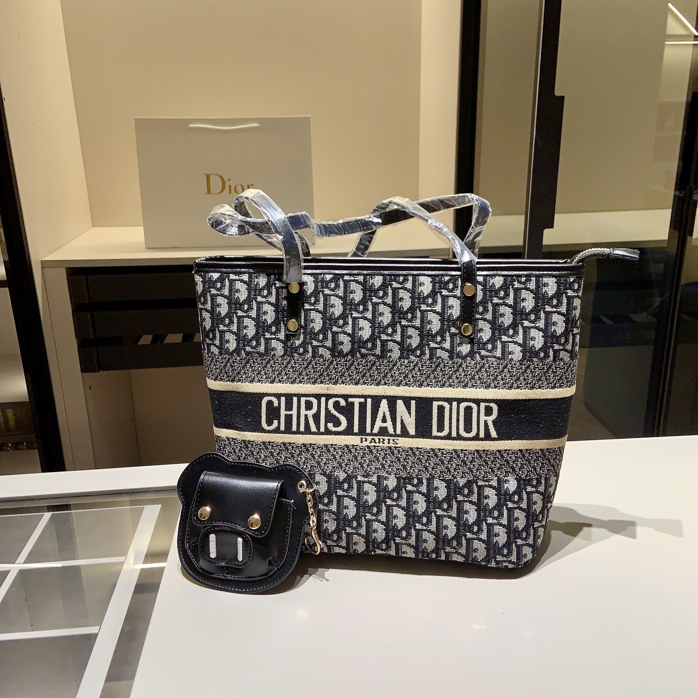 DIOR新作のモノグラムシリーズトートバッグに、コインケースチャーム付き。クラシックなモノグラム素材を使用し、たっぷり入る大容量デザインです。