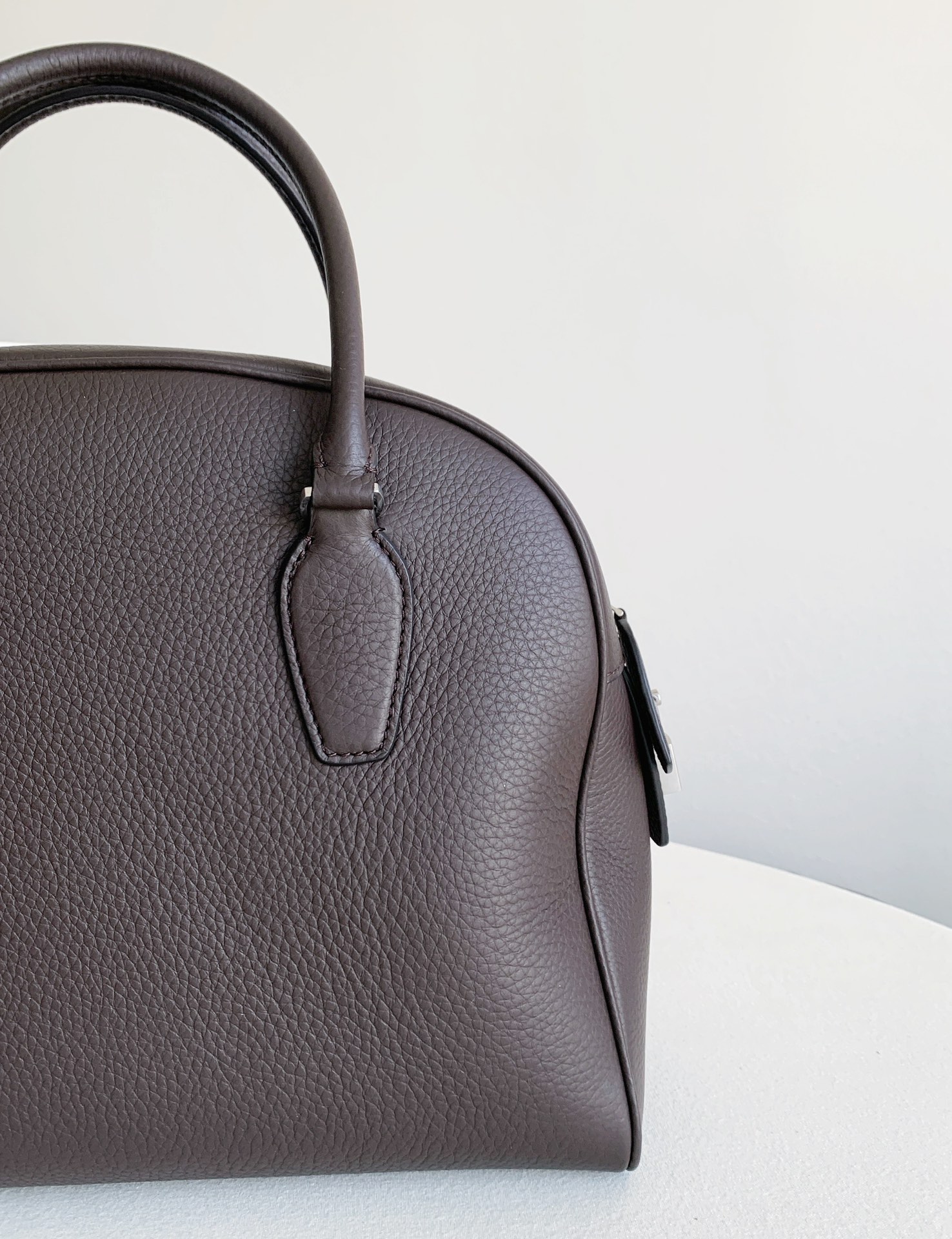 柔らかなスエードを贅沢に用いたこのバッグは、洗練されたミニマルデザインが魅力です。