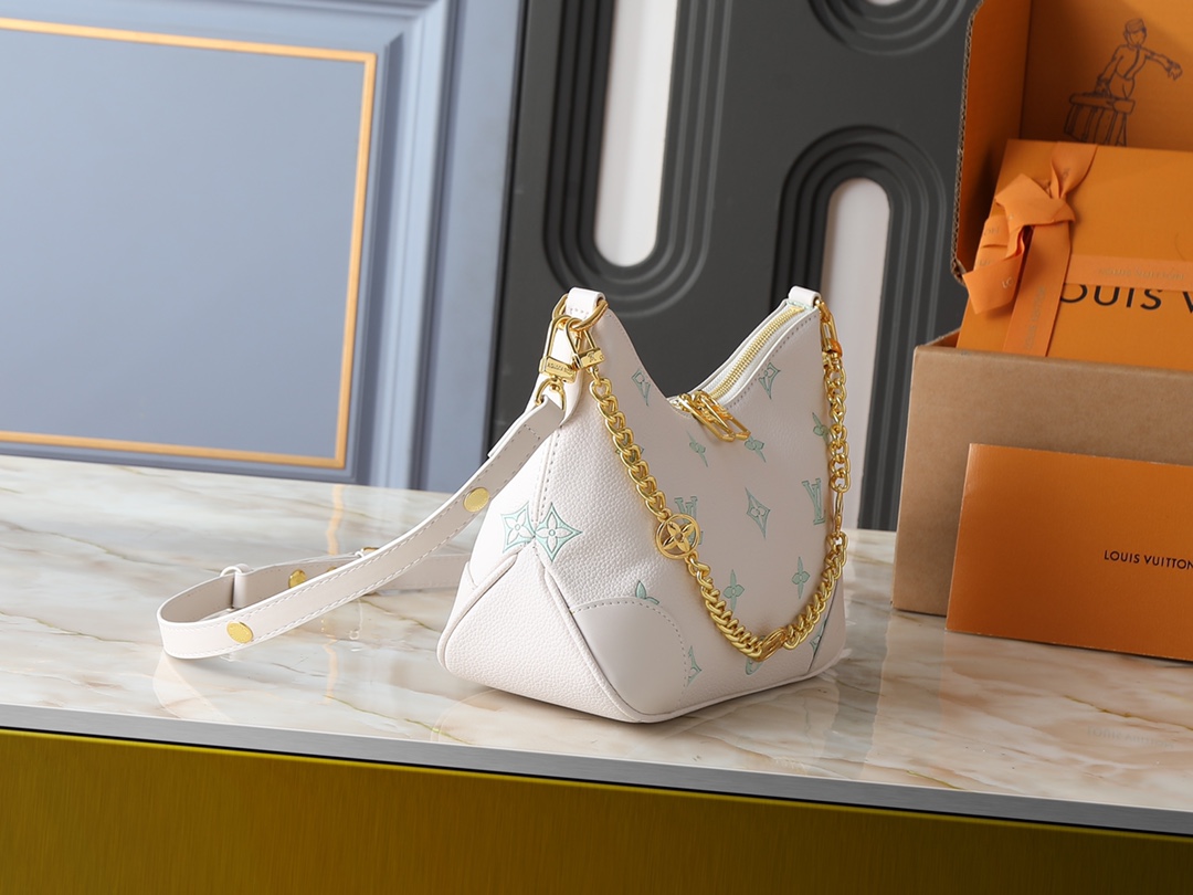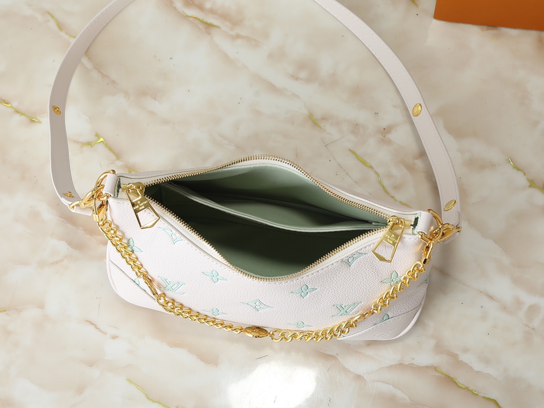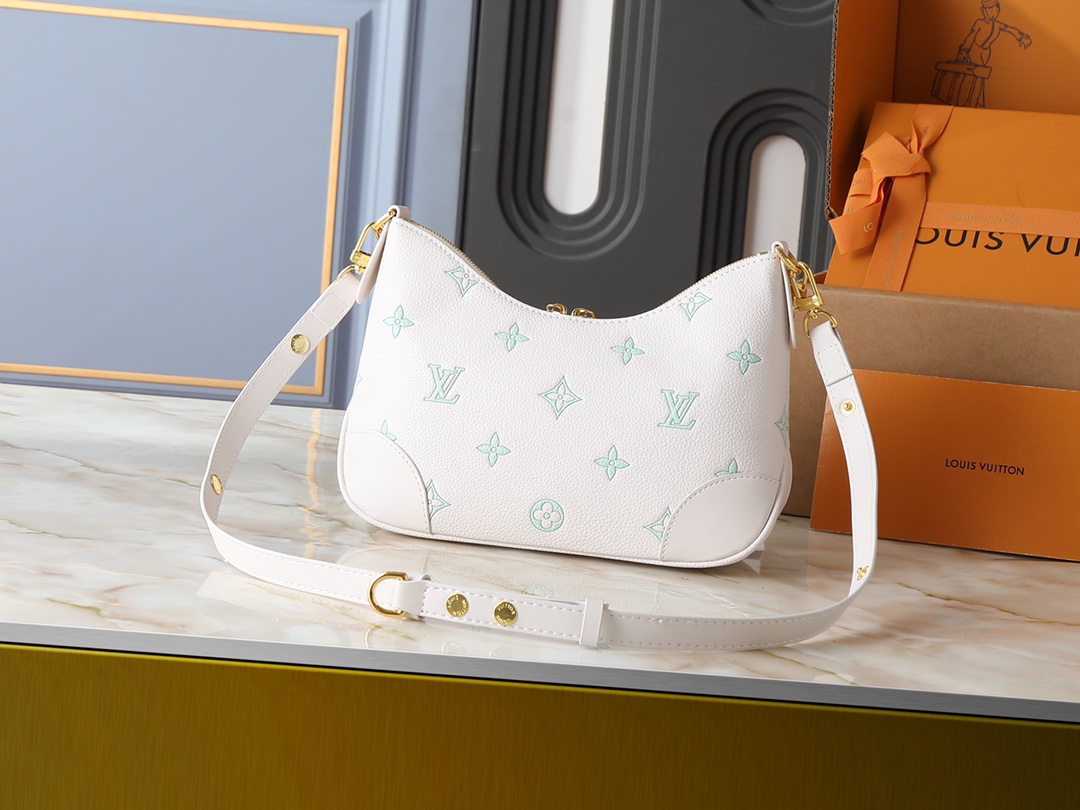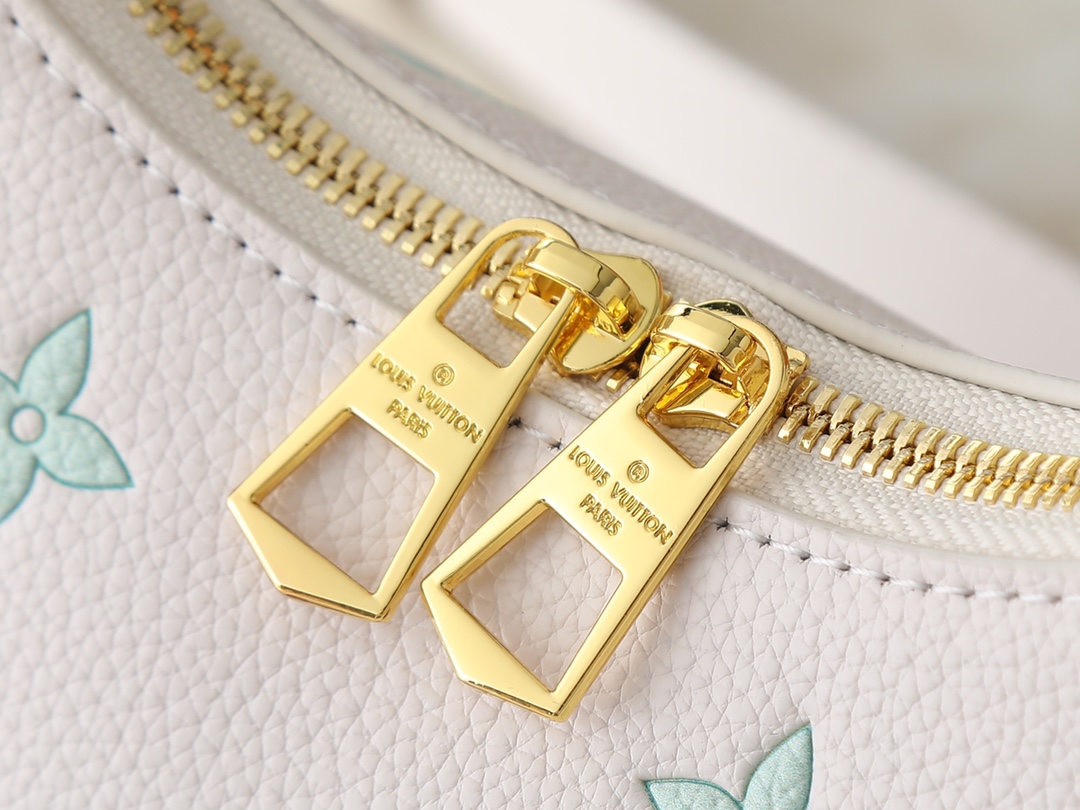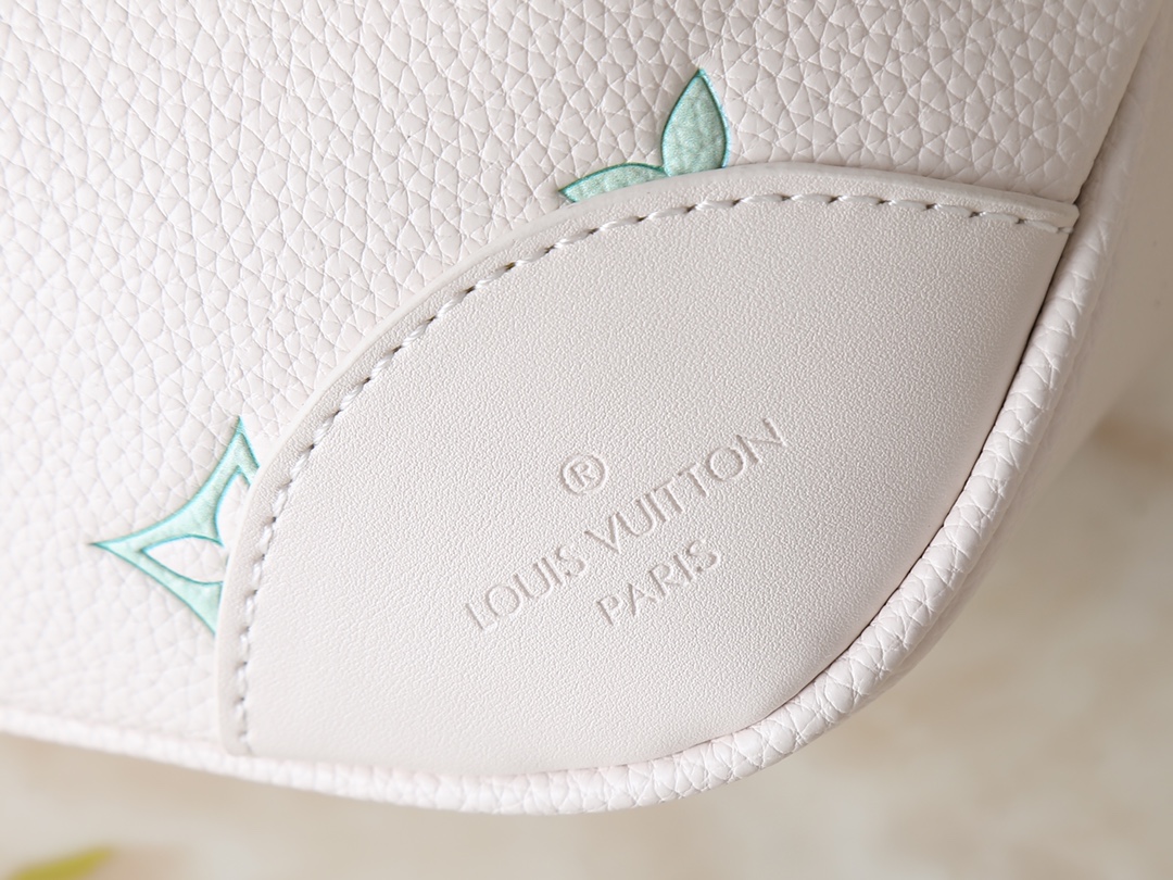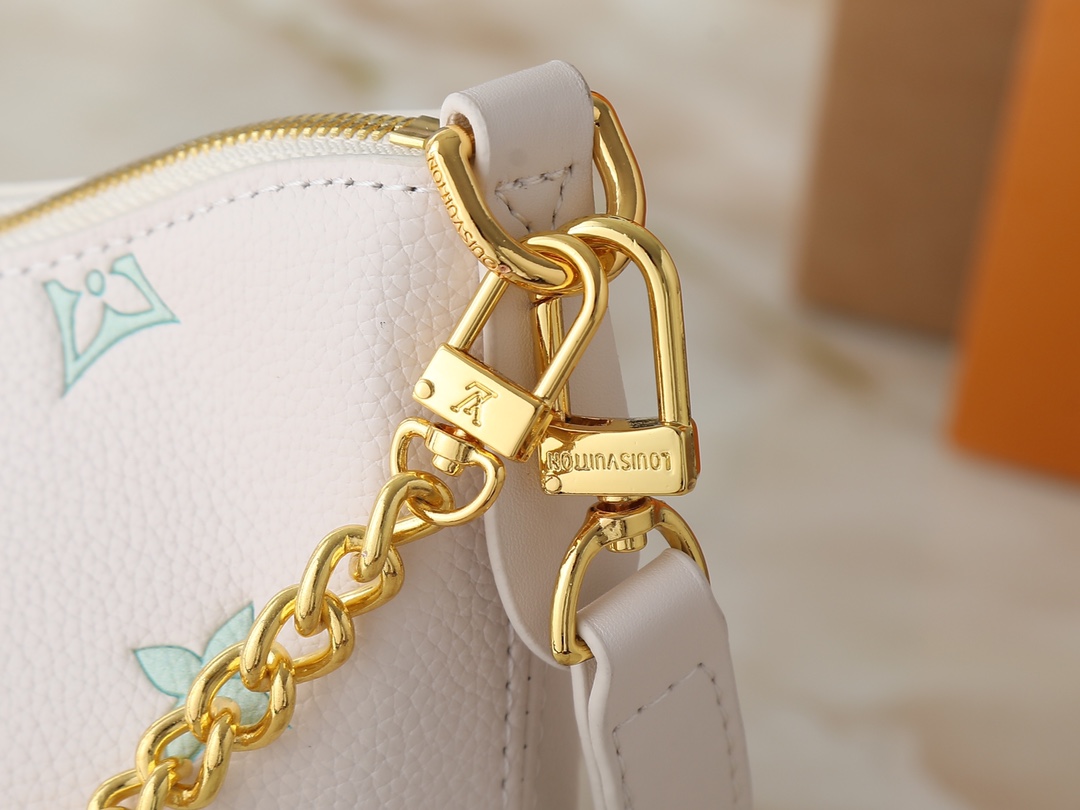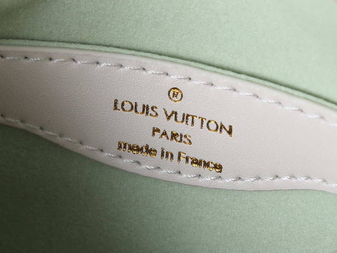 バイカラーの幻想的な色合いが華やぎを添える「ブーローニュ PM」。エレガンスとモダンな印象が絶妙なバランスで表現されたバッグです。ミルキーホワイトとグリーンのレザーにシグネチャーであるモノグラムをエンボス加工で施し、明るいゴールドカラーのLV フラワーがあしらわれたチェーンで彩りました。長めのストラップはお好みで取外しでき、内装には日常の小ぶりな必需品を収納できる充分なスペースを備えています。