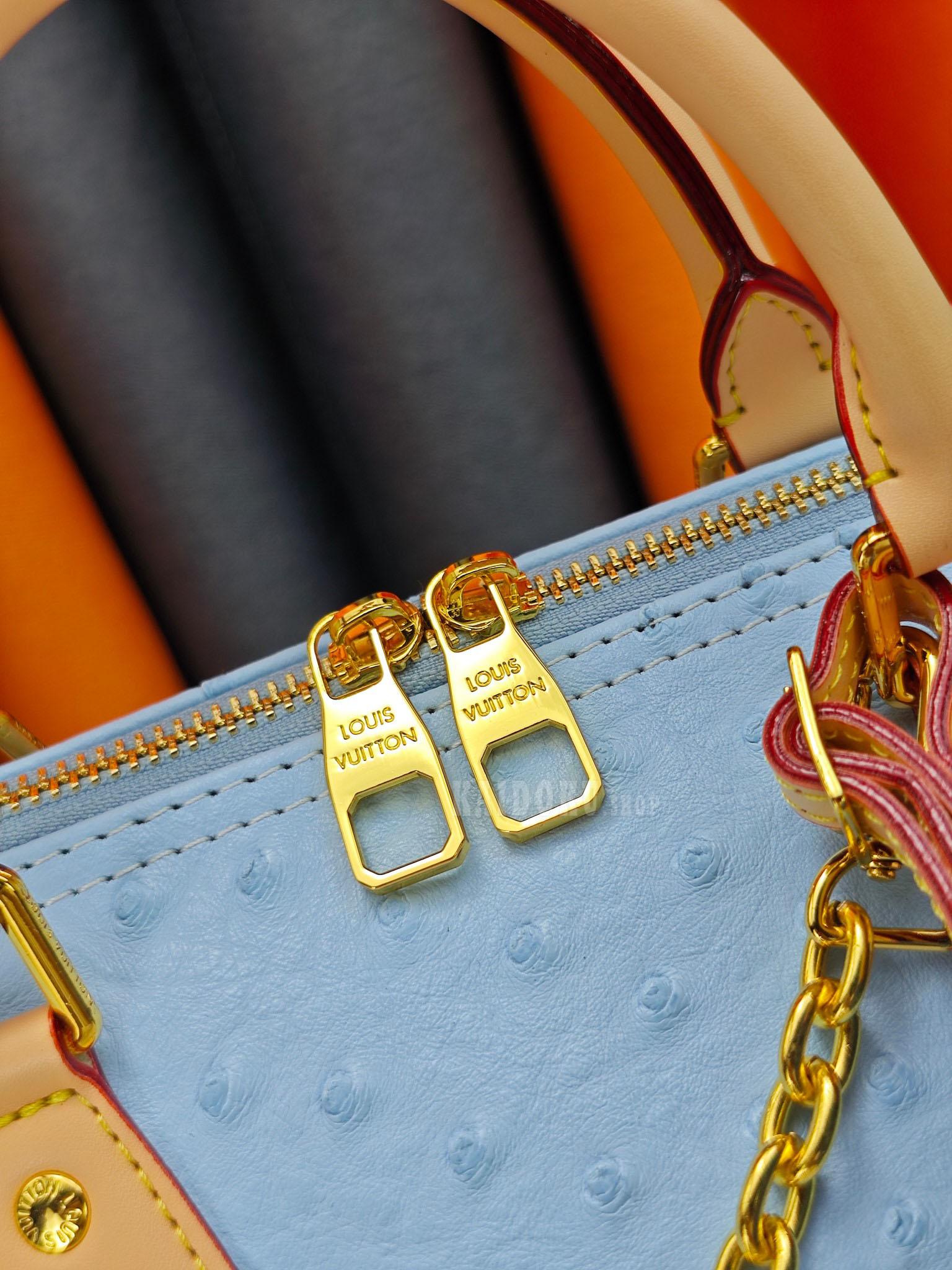 水色のオーストリッチ柄 💙LV Speedy30 ハンドバッグ。スカイブルーのモノグラムが清々しく、エレガントで春・夏の雰囲気たっぷり!